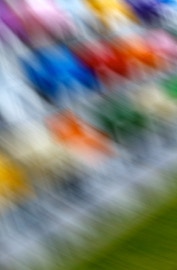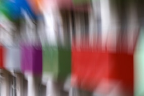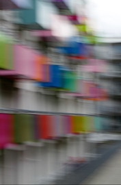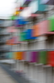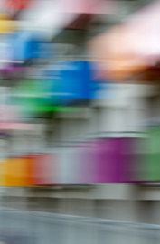 Die Schnelllebigkeit in unseren Städten, die Hast in den Straßen bilden die Grundgedanken für meine Fotoserie. Die Farbwechsel, in der üblichen Kürze des Vorbeifahrens betrachtet, lenken ab, machen auf sich aufmerksam, machen fast nervös, irritieren, erzeugen noch mehr Dynamik und Eile. Die Wahl der langen Belichtungszeit dokumentiert dies zunächst. Als nun gestreckte Momentaufnahme und in Ruhe betrachtet, laden die Fotografien zum Verweilen ein, regen in ihrer teilweise starken Abstraktion zum Nachdenken an und lassen der Phantasie freien Lauf. Das Gebäude an sich rückt in den Hintergrund, ja, es verschwindet zuweilen komplett. Aus einem bunten Ort, aus einem bunten Objekt wird ein farbiges Nichts, das für sich selbst anfängt zu leben und zu wirken.